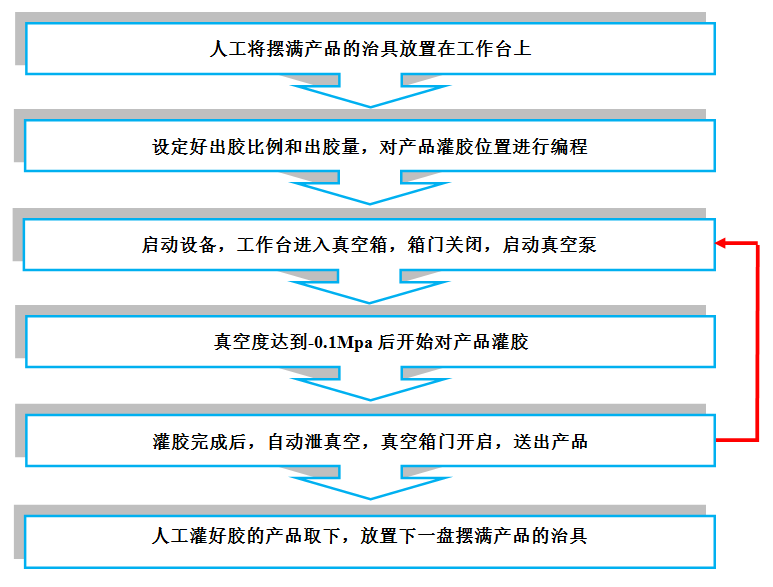 真空灌膠機的作用主要是將AB兩組膠水按照設定好的比例和出膠量,自動配比好后自動混合均勻,在預先抽完真空的環境均勻的灌到每個產品里面,達到一個膠水無氣泡灌封的作業,一般針對要求比較高一些的產品。